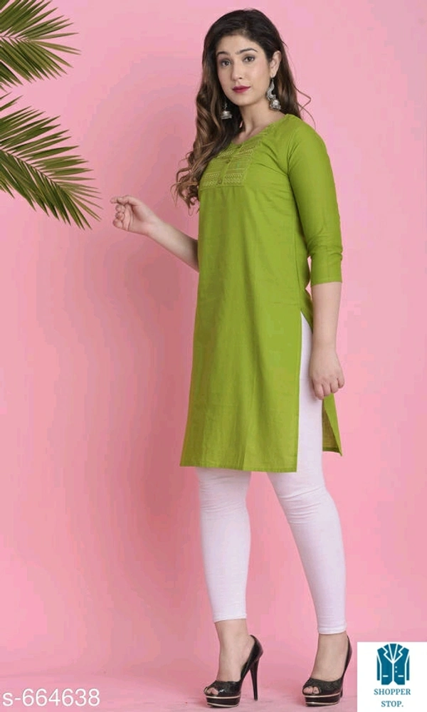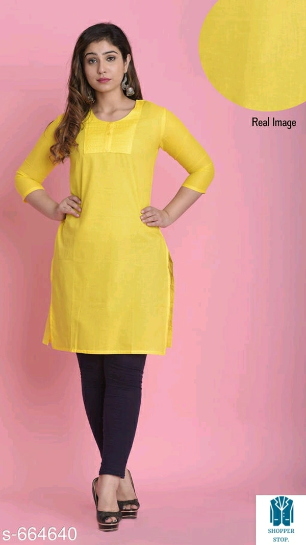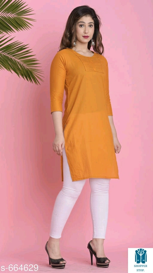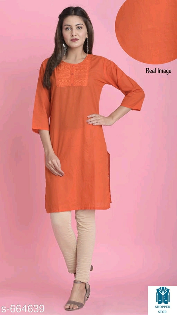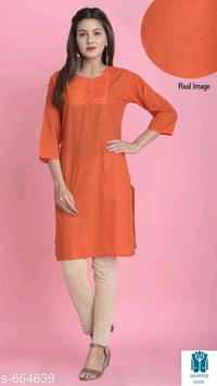 Catalog Name:*⭐Women Cotton A-line Solid Orange Kurti*