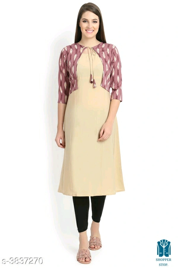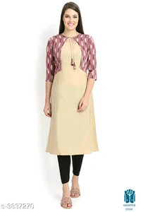 Catalog Name:*☀️Women Crepe Jacket Kurta Solid Orange Kurti*
